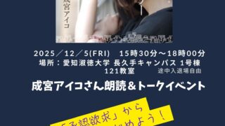 創造表現学会学生企画「成宮アイコさん朗読&トークイベント」開催のお知らせ