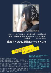 【問合せ先】yanaita@asu.aasa.ac.jp (創造表現学部・柳井)