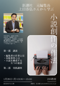 いま話題の作家・グレゴリーケズナジャットさんを招いてアメリカ人がいだくオリエンタリズム、日本人がもつナショナリズムをめぐって文学や映画を交えて柳井貴士先生と対談形式でお話します。