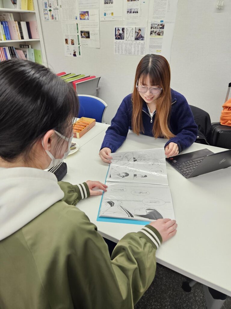 2026年2月4日(水)・5日(木)の2日間、吉田朝香ゼミ・シミズヒトミゼミを対象とした出張編集部を実施しました。漫画出版社から編集者さんをお迎えして、学生の作品を直接講評していただき、今後の創作活動に向けた貴重なアドバイスをいただきます。