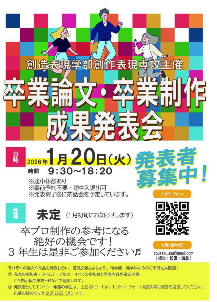 卒業プロジェクト成果発表会開催・発表者募集のお知らせ