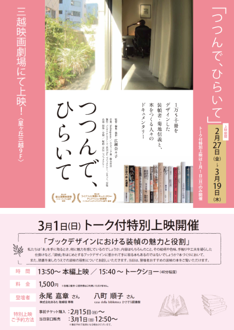 永尾嘉章先生 3月1日(日) 映画『つつんで、ひらいて』トークイベントのお知らせ