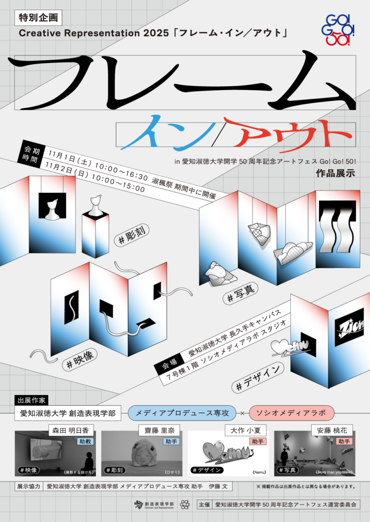 愛知淑徳大学開学50周年記念アートフェスの特別展示エリアとして、「Creative Representation 2025:フレーム・イン/アウト」を開催します。