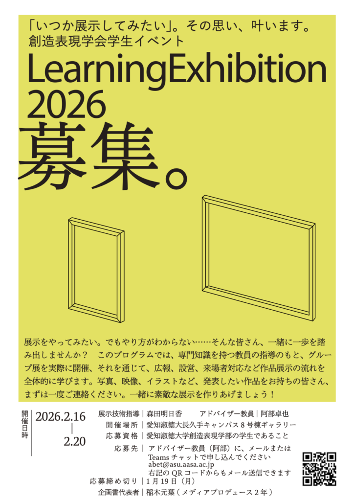 【募集】「いつか展示をやってみたい」。その思い、叶います。創造表現学生イベントLearning Exhibition2026 参加者募集