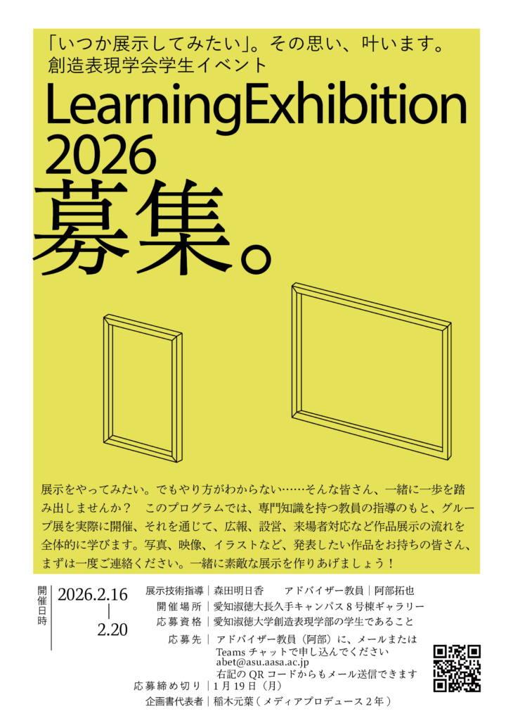 【募集】「いつか展示をやってみたい」。その思い、叶います。創造表現学生イベントLearning Exhibition2026 参加者募集